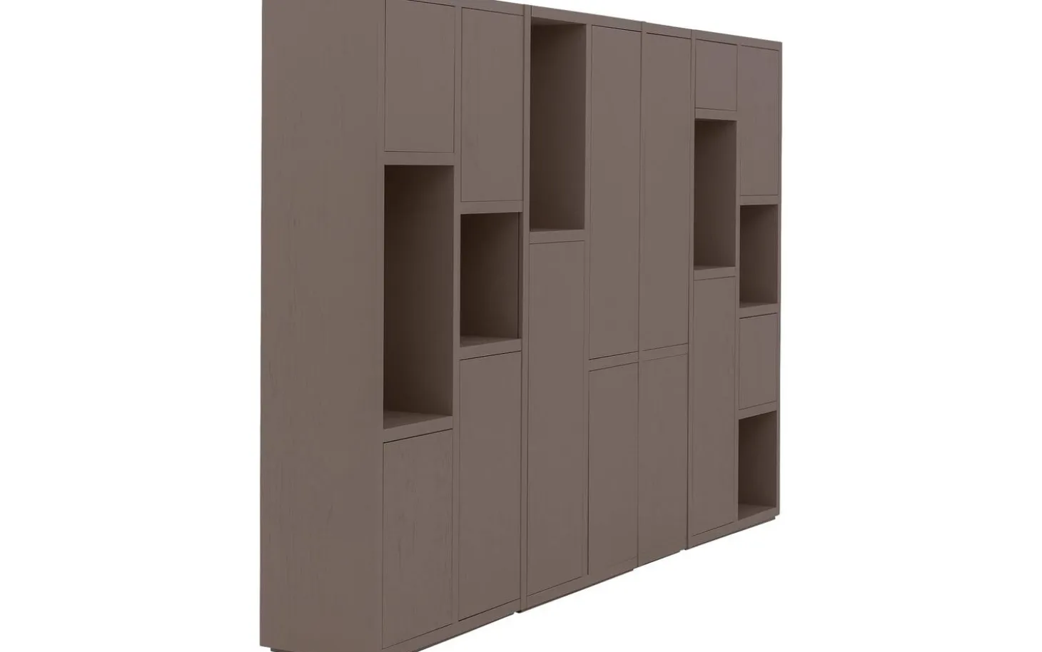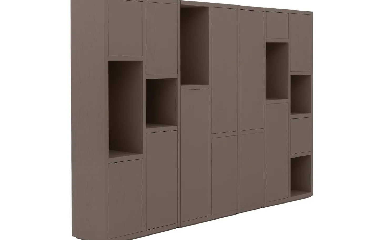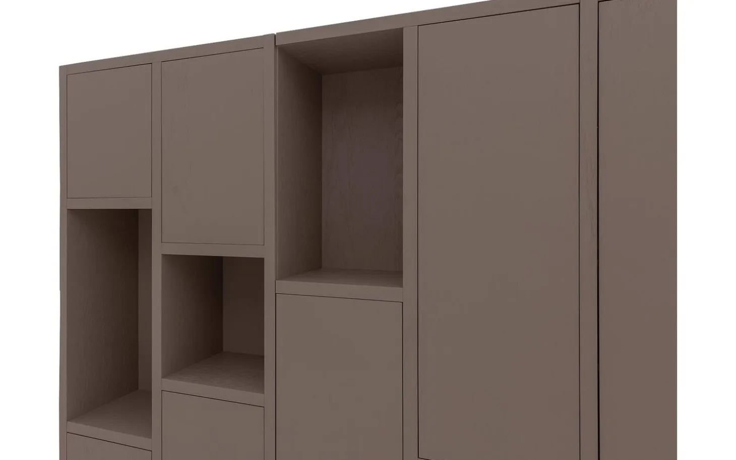 Met zes open vakken en dertien gesloten deuren regel je precies wat je wilt laten zien en wat liever uit het zicht blijft. Decoreer de open vakken met je mooiste spullen, terwijl je achter de deuren alle ruimte hebt voor praktische opslag. Het wandmeubel staat stevig op de grond zonder zichtbare poten, wat zorgt voor een rustige en strakke uitstraling.