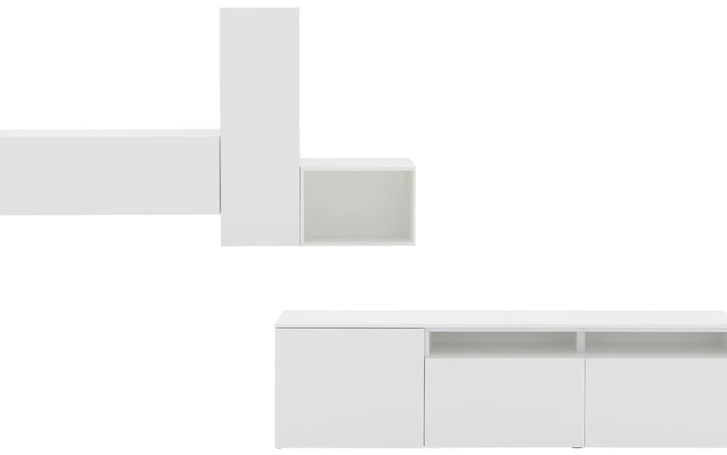 Wandmöbel Monza verleiht Ihrem Wohnzimmer sofort eine moderne Ausstrahlung. Die klare weiße Verarbeitung passt perfekt zu zeitgemäßen Interieurs, während die großzügigen Abmessungen für eine beeindruckende Erscheinung an der Wand sorgen. Durch die Kombination aus geschlossener Aufbewahrung und offenen Fächern kreieren Sie ein schönes Gleichgewicht zwischen Funktionalität und Stil.